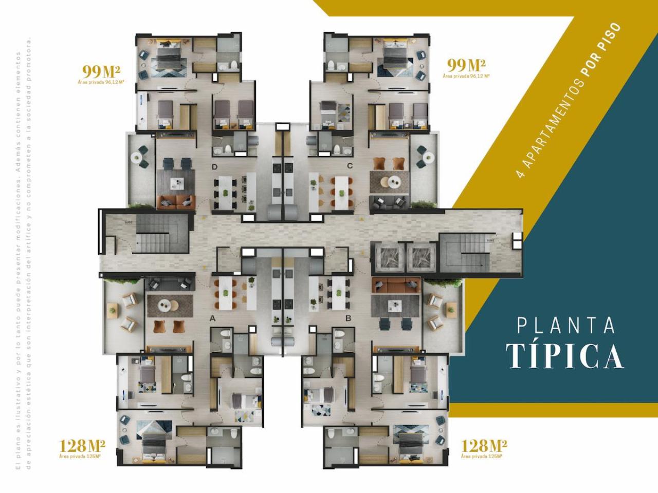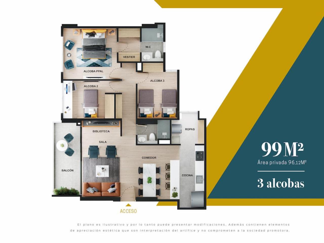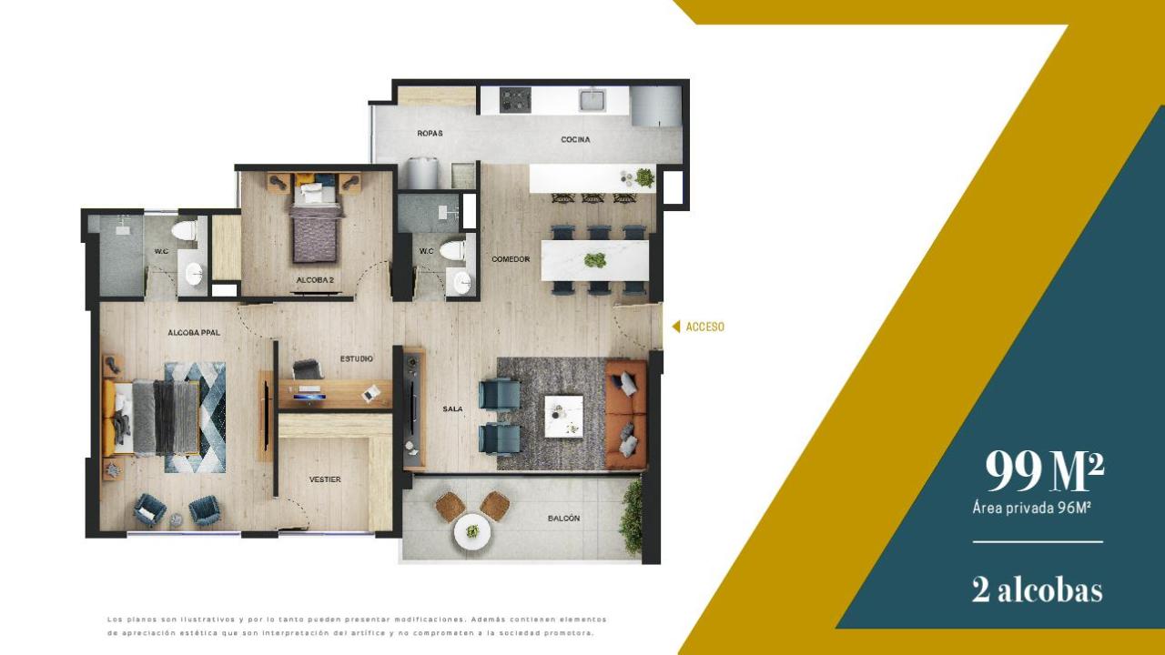 Las imágenes utilizadas son representaciones digitales del diseño y junto con los apartamentos y casas modelo pueden variar en la construcción final. El mobiliario, electrodomésticos, gasodomésticos, acabados y demás elementos que aparecen en las imágenes del apartamento o casa modelo son una representación a fin de ilustrar la utilización de los espacios y pueden diferir de lo entregado o no ser entregado según lo convenido en los contratos. Las áreas privadas y construidas podrán sufrir ajustes y quedarán finalmente determinadas en los contratos suscritos por las partes. Las zonas comunes serán entregadas por etapas según la programación de construcción.