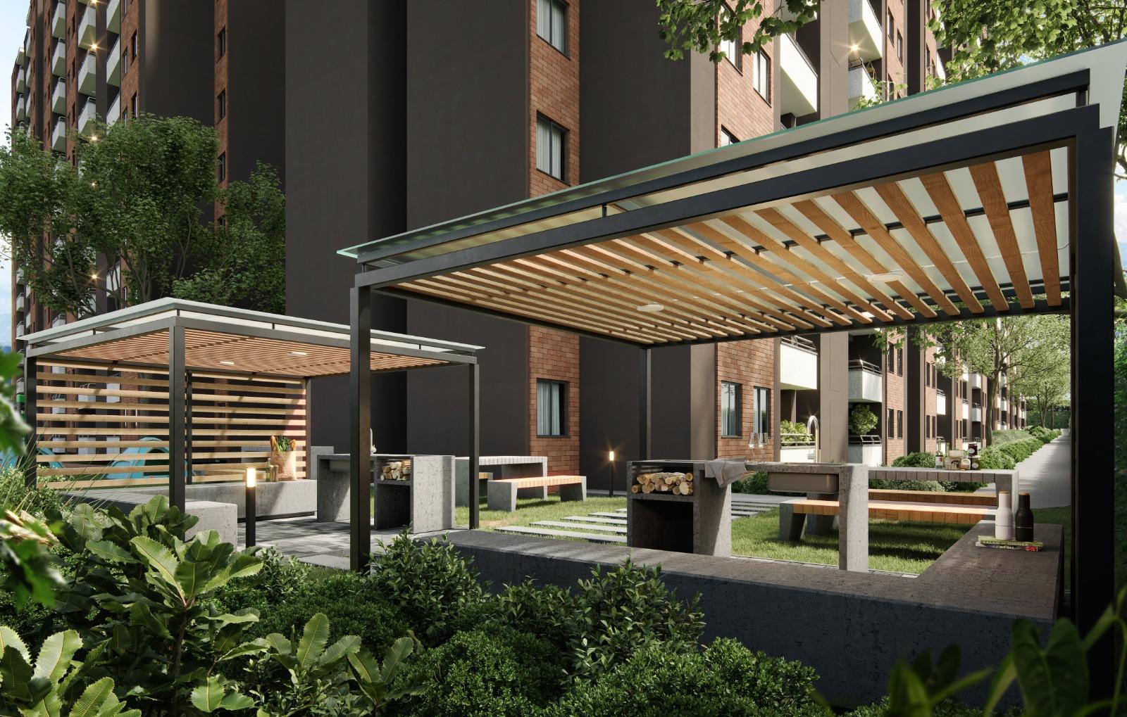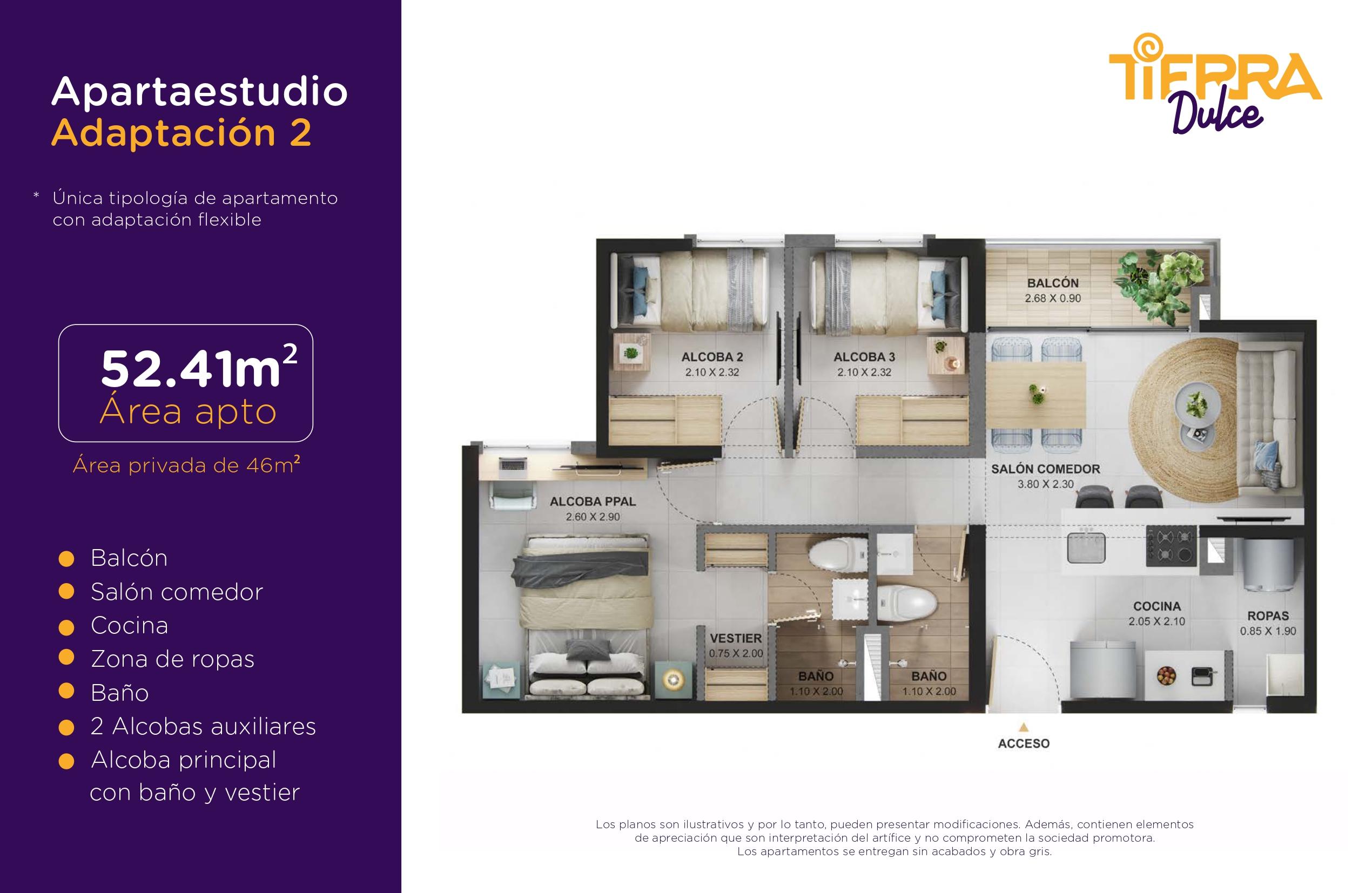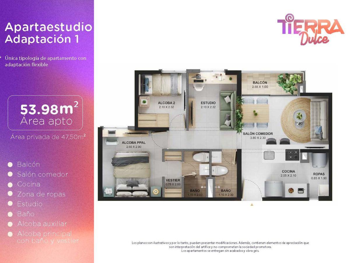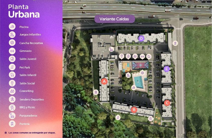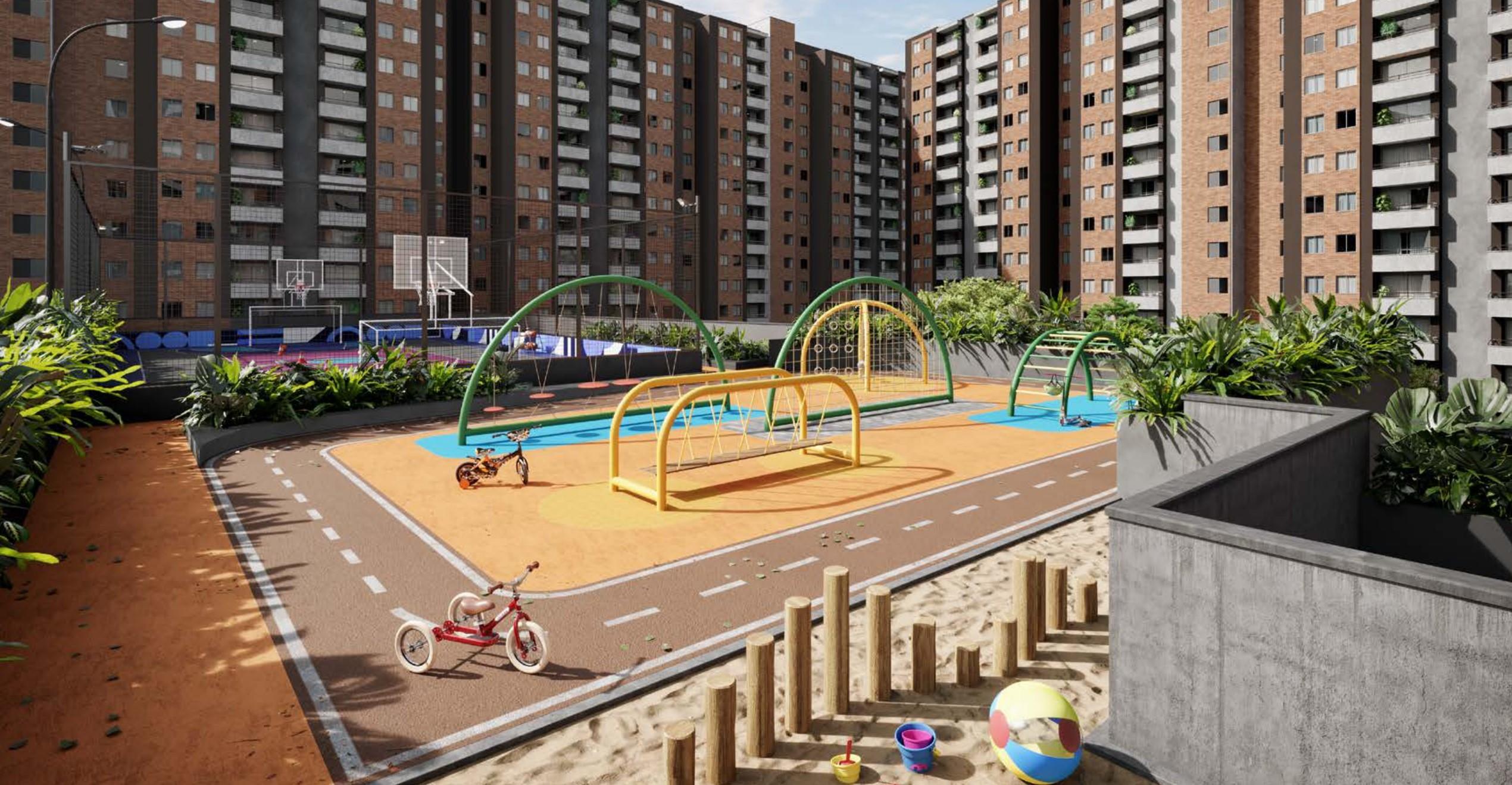 Las imágenes utilizadas son representaciones digitales del diseño y junto con los apartamentos y casas modelo pueden variar en la construcción final. El mobiliario, electrodomésticos, gasodomésticos, acabados y demás elementos que aparecen en las imágenes del apartamento o casa modelo son una representación a fin de ilustrar la utilización de los espacios y pueden diferir de lo entregado o no ser entregado según lo convenido en los contratos. Las áreas privadas y construidas podrán sufrir ajustes y quedarán finalmente determinadas en los contratos suscritos por las partes. Las zonas comunes serán entregadas por etapas según la programación de construcción.