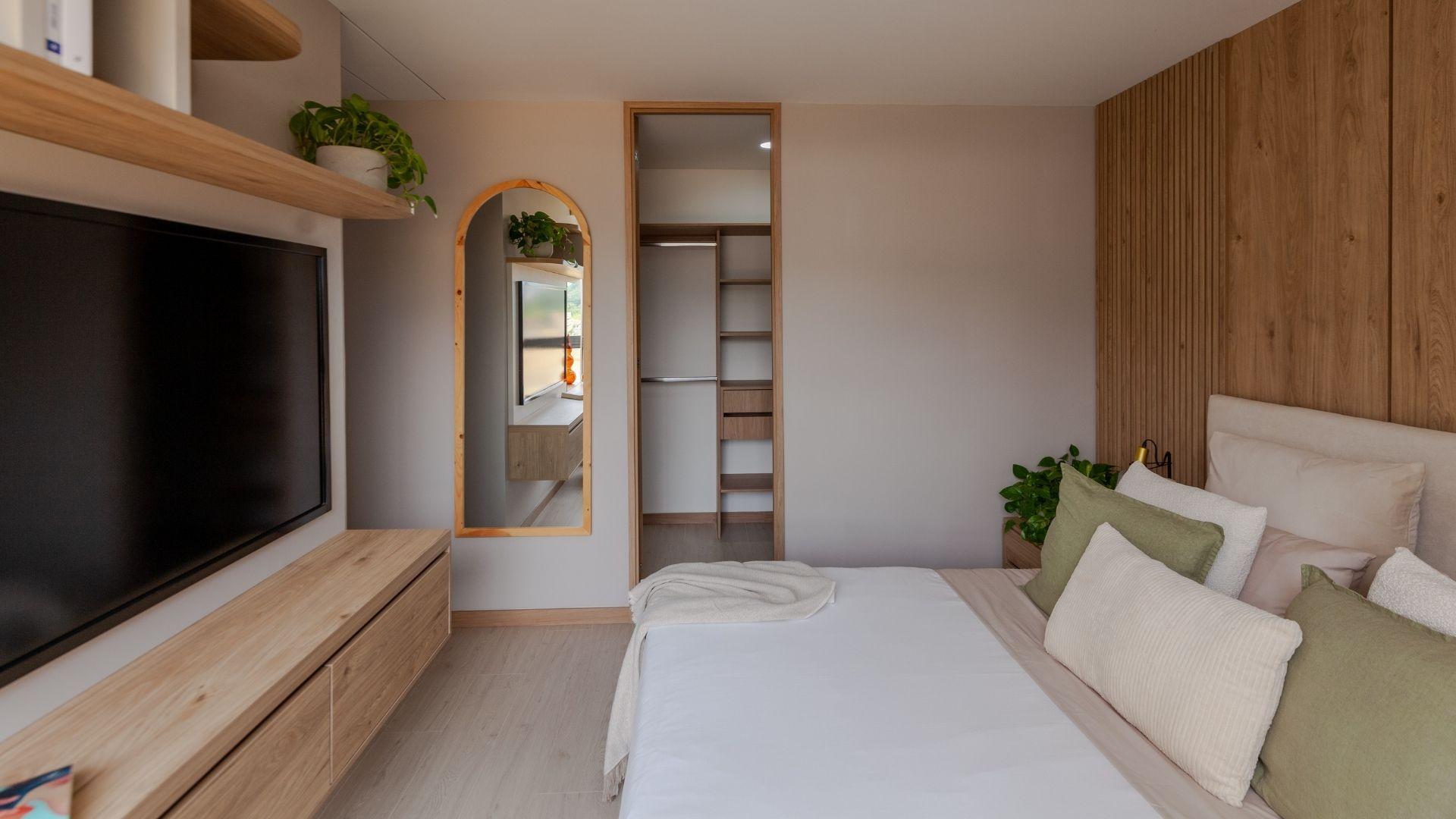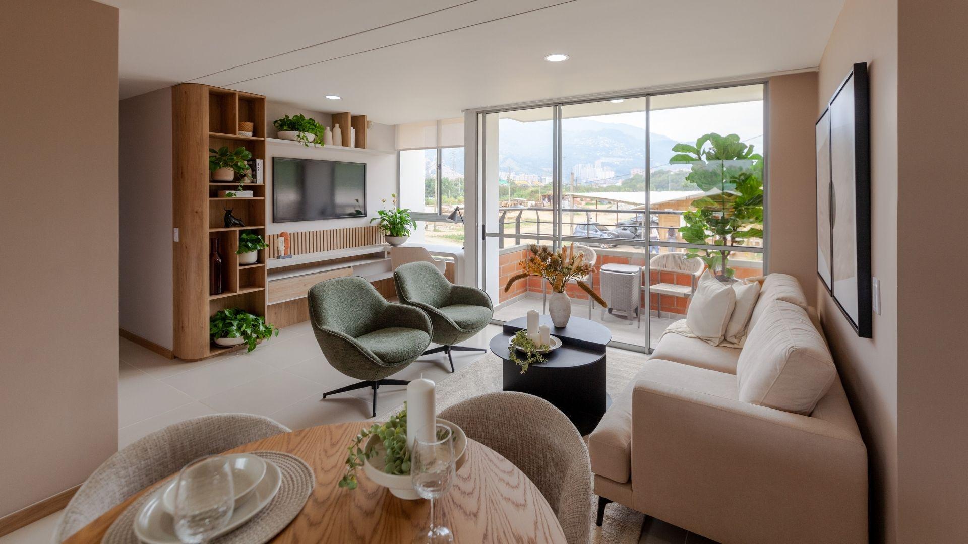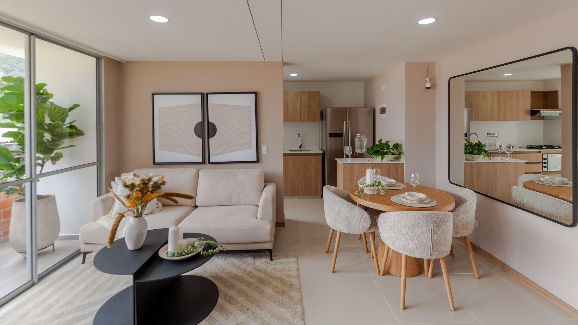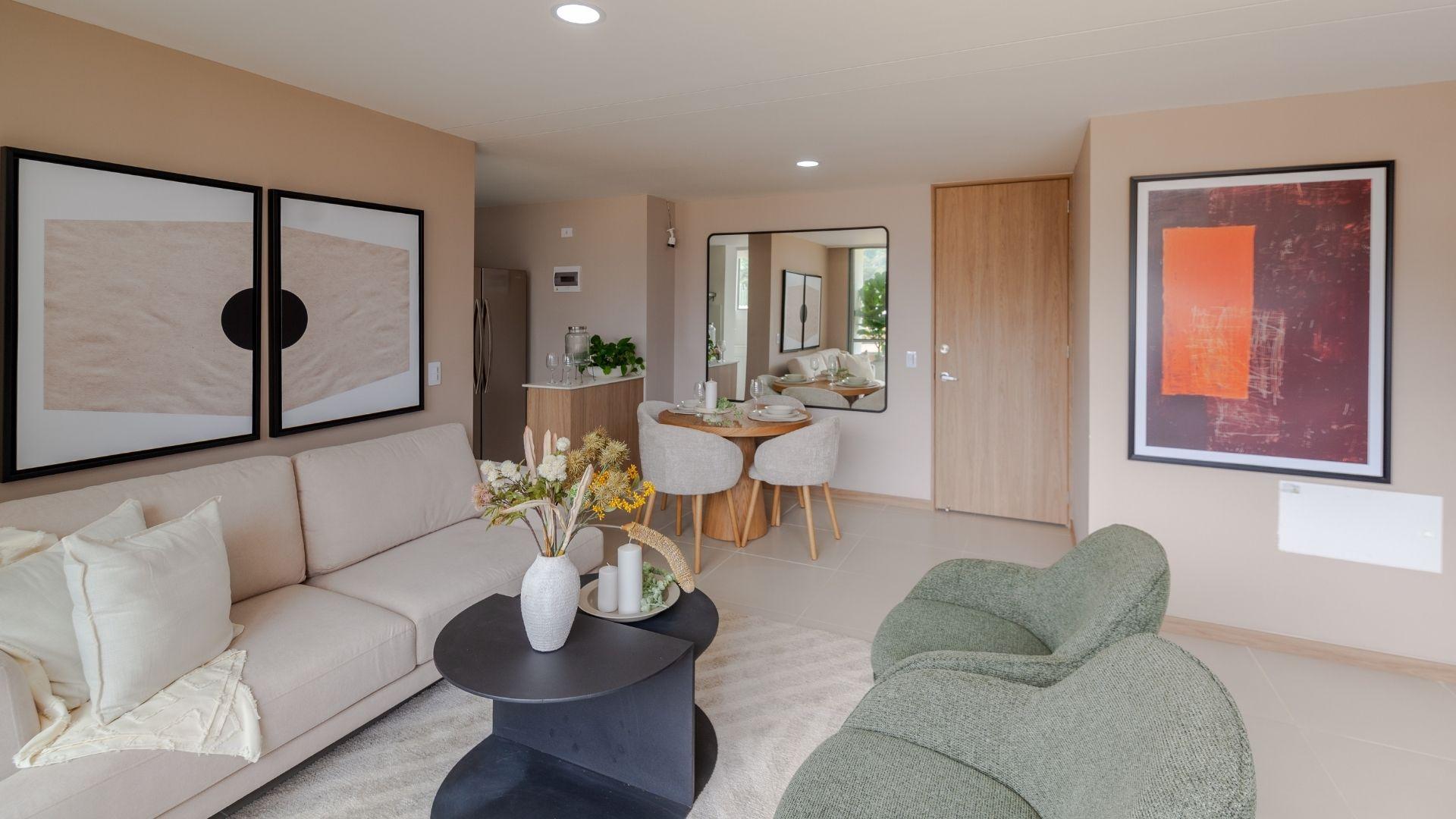 Las imágenes utilizadas son representaciones digitales del diseño y junto con los apartamentos y casas modelo pueden variar en la construcción final. El mobiliario, electrodomésticos, gasodomésticos, acabados y demás elementos que aparecen en las imágenes del apartamento o casa modelo son una representación a fin de ilustrar la utilización de los espacios y pueden diferir de lo entregado o no ser entregado según lo convenido en los contratos. Las áreas privadas y construidas podrán sufrir ajustes y quedarán finalmente determinadas en los contratos suscritos por las partes. Las zonas comunes serán entregadas por etapas según la programación de construcción.