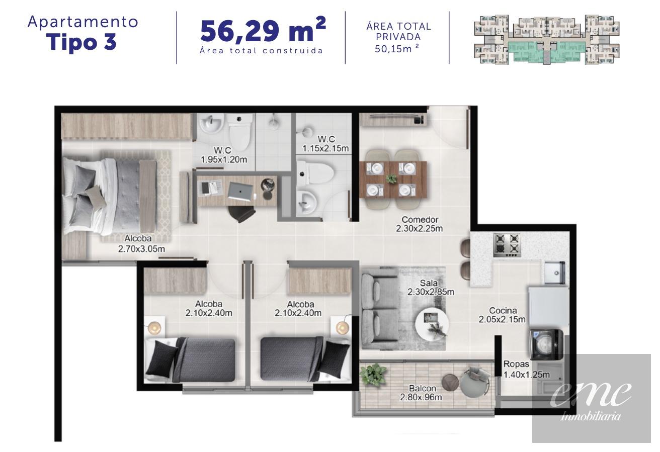 Se vende apartamento en obra gris, sector el San Gabriel, unidad nueva cerrada, excelente iluminación natural y excelente vista, piso alto, el inmueble cuenta con tres alcobas, dos baños, balcón, sala comedor, cocina, alcoba principal con baño, el apartamento tiene una excelente vista y cuenta con parqueadero cubierto privado, zonas comunes: piscina de niños y adultos ,gimnasio, salón social, juegos infantiles, zona bbq ,cancha y zona de mascotas, super mercados cercanos,transporte publico al frente de la porteria, portería 24 horas.